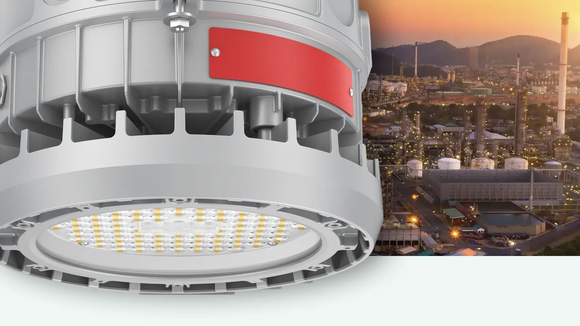 - EXA03 – Robust explosion-proof LED high-bay light for hazardous-rated locations, featuring brightness of up to 9,800 lumens. It can be installed on very high ceilings and emits a 120° beam of light to cover a broad area with a diffused light output.